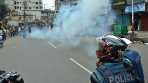 এর এক পর্যায়ে আন্দোলনকারীদের দিকে পুলিশ কাঁদুনে গ্যাস ও সাউন্ড গ্রেনেড ছুড়লে তারা ছত্রভঙ্গ হয়ে যান। সেসময় পুলিশ ধাওয়া করে কয়েকজনকে লাঠিপেটা করে এবং কয়েকজনকে আটক করে।