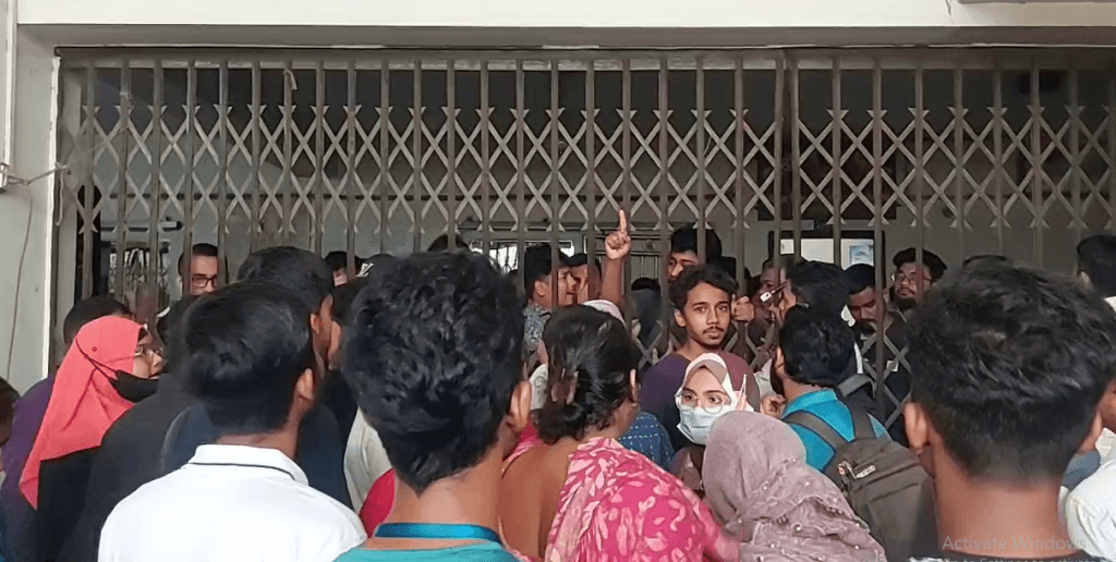 আজ বৃহস্পতিবার (১৭ অক্টোবর) বেলা ১১টা থেকে বোর্ডের সামনে আন্দোলন শুরু করেন তারা। এসময় বিভিন্ন কলেজের প্রায় শতাধিক শিক্ষার্থী উপস্থিত ছিলেন।