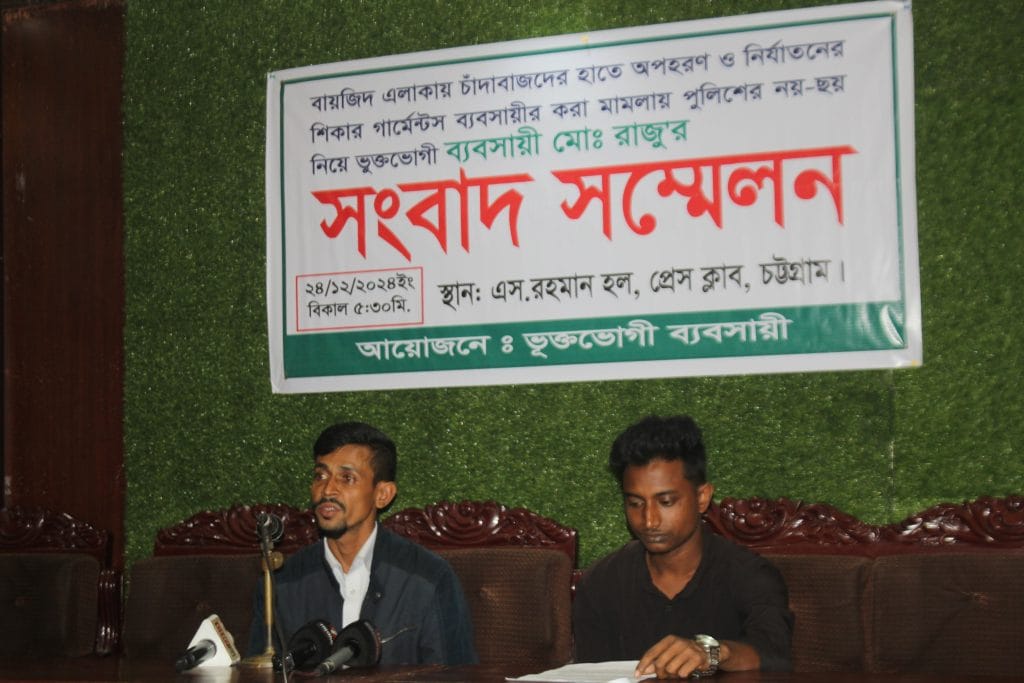 আজ মঙ্গলবার (২৪ ডিসেম্বর) চট্টগ্রাম প্রেস ক্লাবের এস রহমান হলে এক সংবাদ সম্মেলনে এসব অভিযোগ তুলে ধরেন ভুক্তভোগী গার্মেন্টস ব্যবসায়ী মোহাম্মদ রাজু। এ সময় লিখিত বক্তব্য রাখেন তার ভাতিজা সাজ্জাদ।