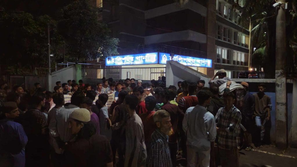 কলেজছাত্র সাব্বিরের খুনিদের ৭২ ঘণ্টার মধ্যে গ্রেফতারের আল্টিমেটাম, থানার সামনে বিক্ষোভ